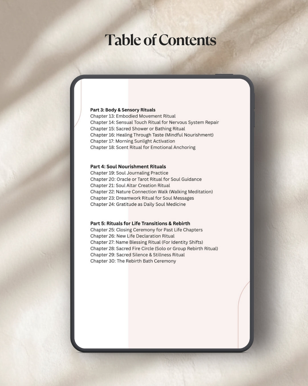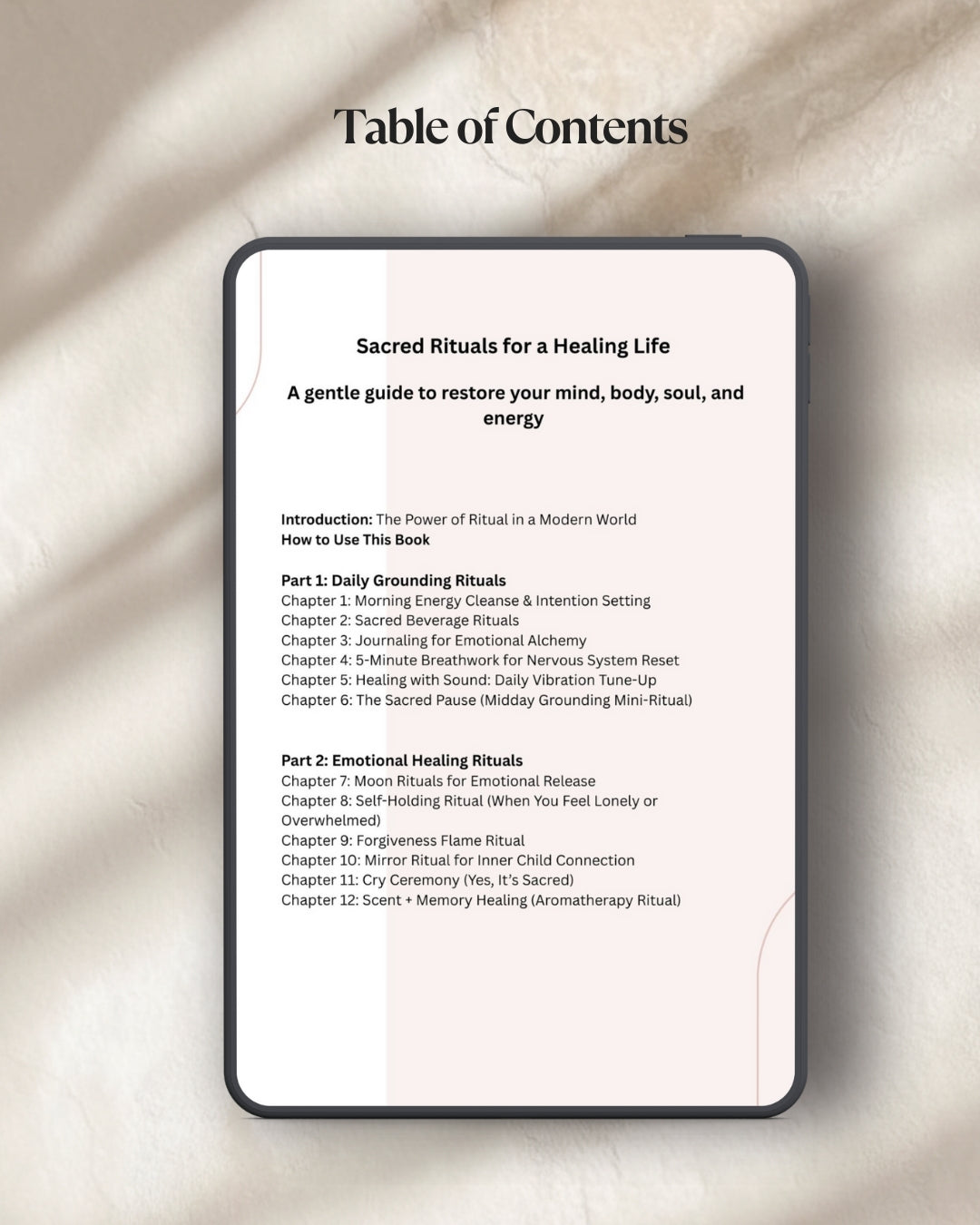 Inside, you’ll find rituals that calm your nervous system, cleanse your energy, soften your heart, and reconnect you with peace.